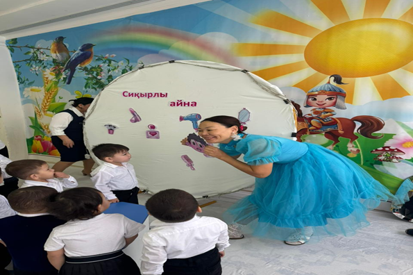 Тақырыбы: "Сиқырлы айна"Мақсаты: Баланың өз бейнесін таныту. Көз, мұрын, ауыз сөздерін айтуға үйрету. Күлімсіреу, эмоцияны көрсету.Тәрбиешілері: Мусиргалева.Н.ҚСалықова.А.А